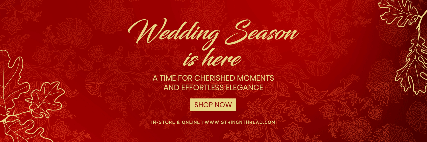 From traditional red bridal outfits to modern pastel engagement dresses, String & Thread’s wedding collection is a blend of timeless artistry and contemporary trends. Our formal wear range also includes rich jewel-tone ensembles, perfect for guests who want to make a statement at every event.