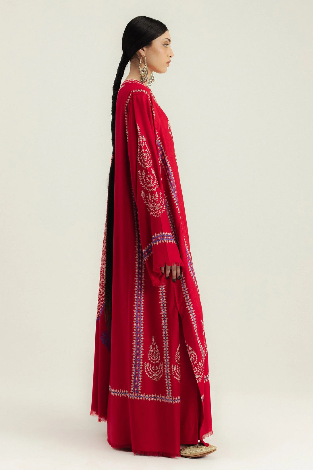Zara Shahjahan Laalazar Three Piece Marina is a ready-to-wear dress set that includes a top, pants, and a dupatta in Marina fabric. The top and sleeves are Marina, with an embroidered design across the garment. It is stitched by String & Thread and offered as a ready-to-wear piece. The set is part of the Winter 2025 collection.