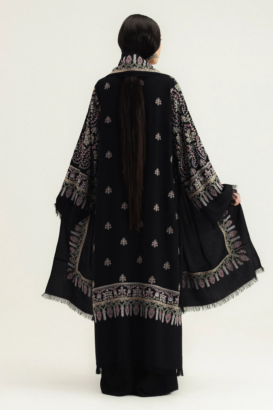 Zara Shahjahan Shahgul Three Piece Marina is a ready-to-wear dress set, including a top, pants, and a dupatta. All pieces use Marina fabric, with embroidered detailing on the top. The outfit is stitched by String & Thread and ready to wear. It belongs to the Winter 2025 collection.