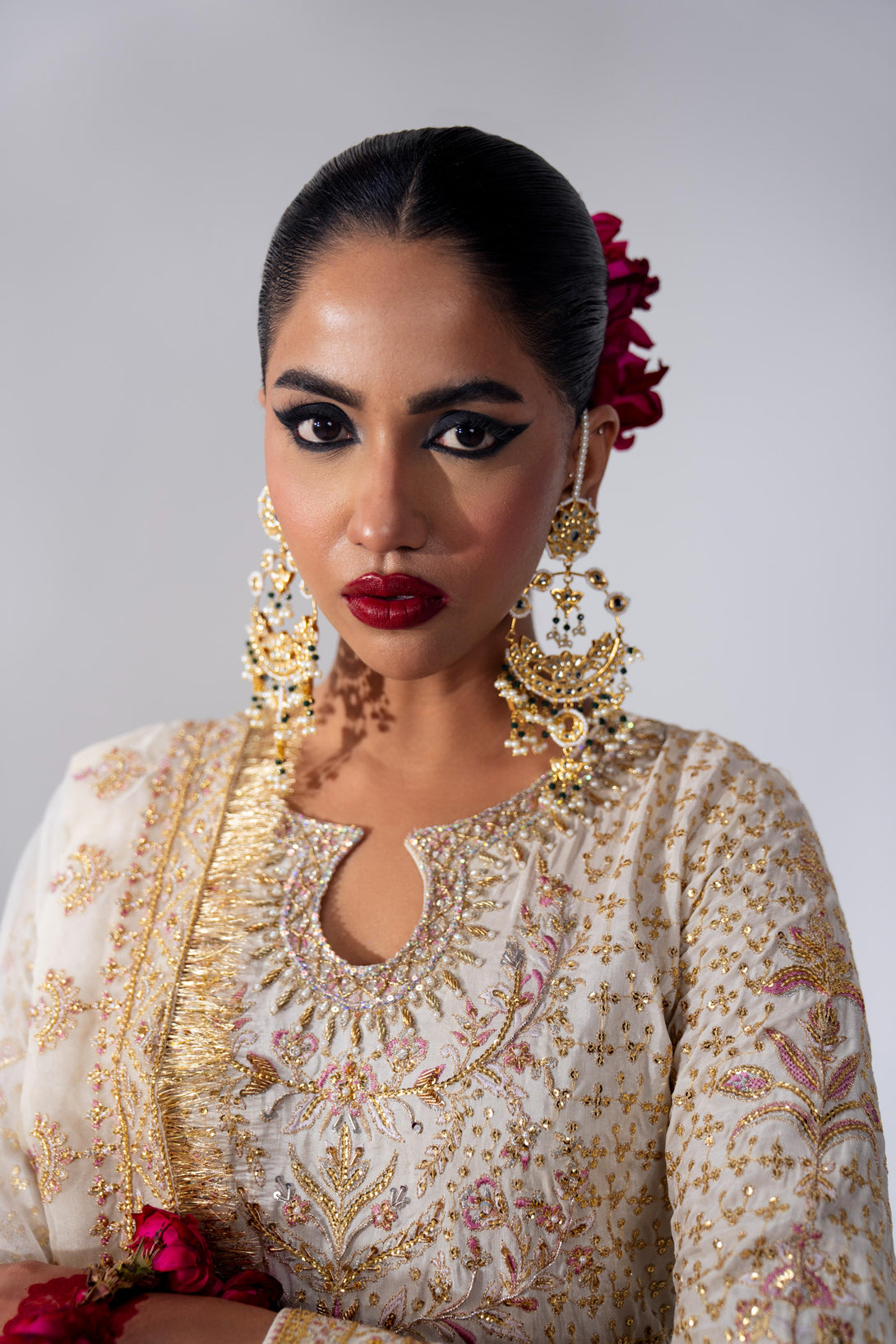 Pishwas: Korean Rawsilk - Hand-Embellished and Embroidered