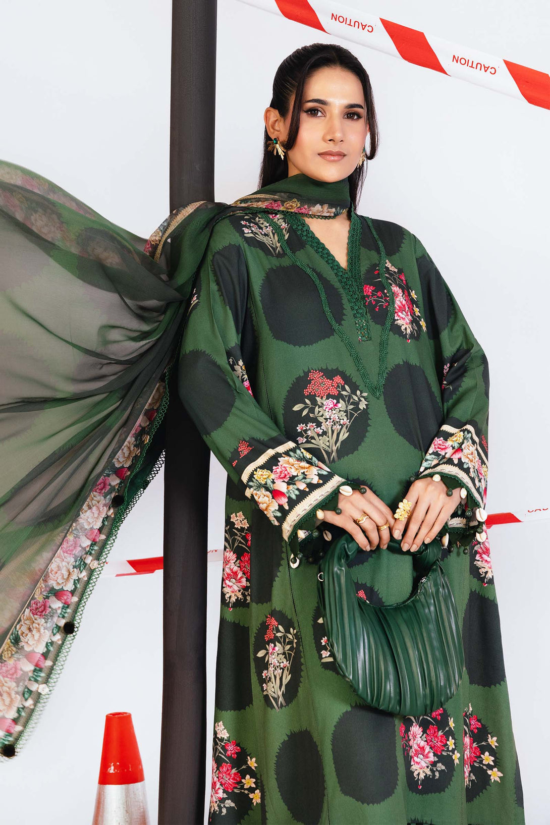 If you’re after the best three-piece winter outfit, this Maria B set delivers. The Marina Twill top and sleeves stay crisp, while linen pants provide comfort and breathability. The dupatta’s cationic chiffon adds graceful drape. How to choose the right ready-to-wear set? consider fit, length, and ease of movement—this ensemble checks all boxes for a flattering silhouette.