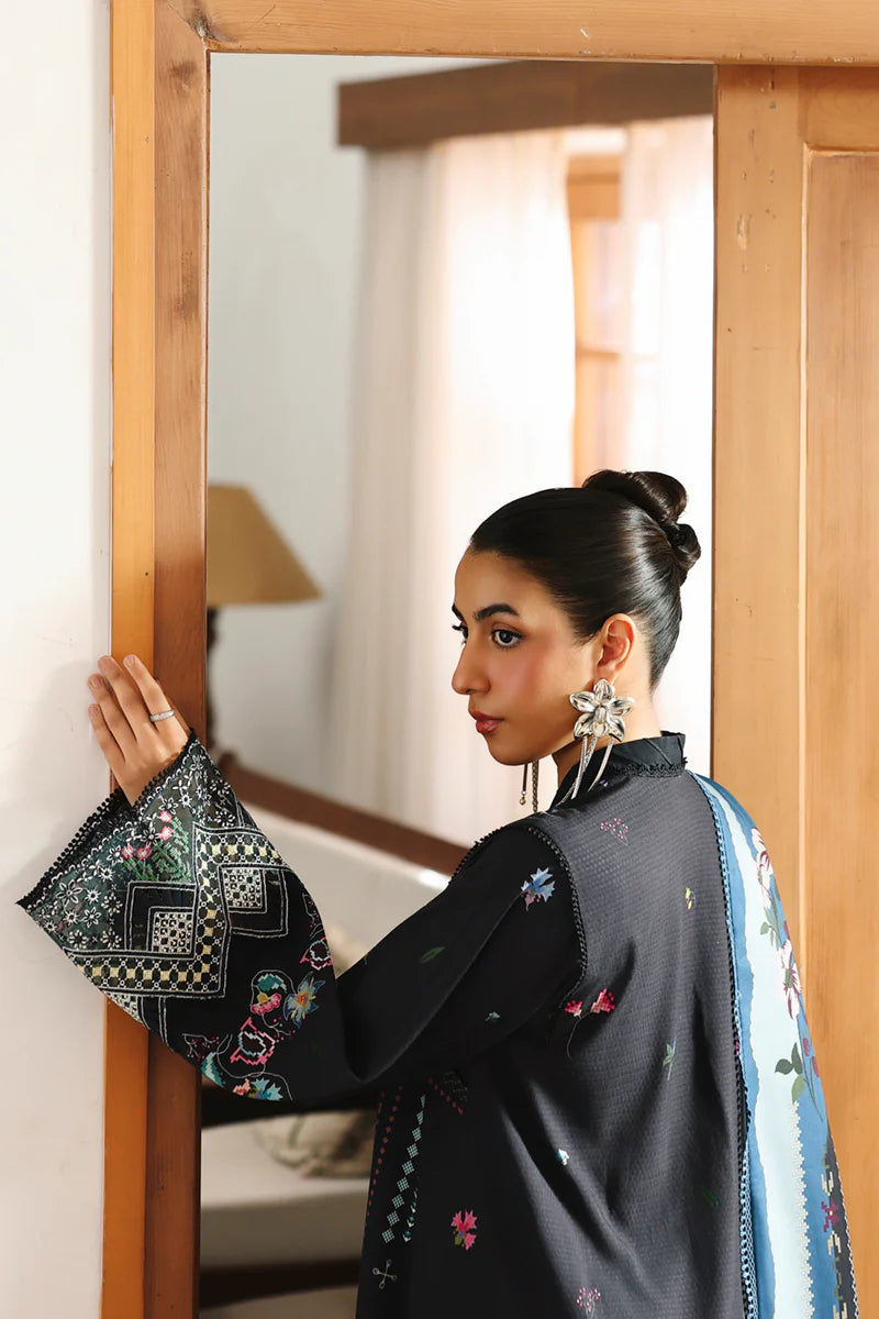 Qalamkar - QW-06 B Skye Three Piece Jacquard Weaved