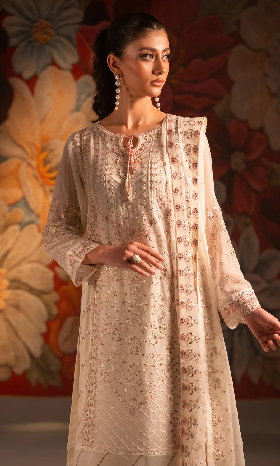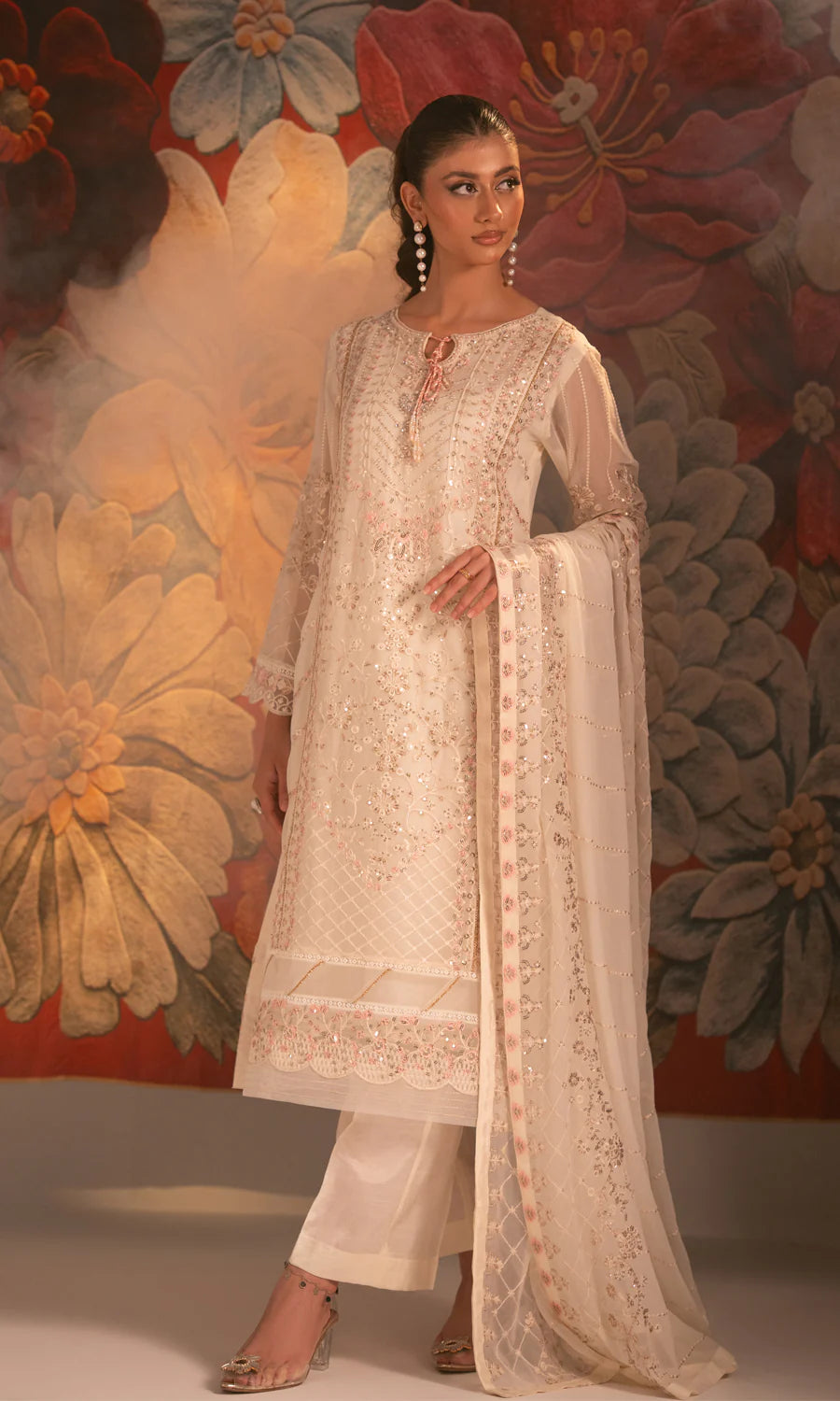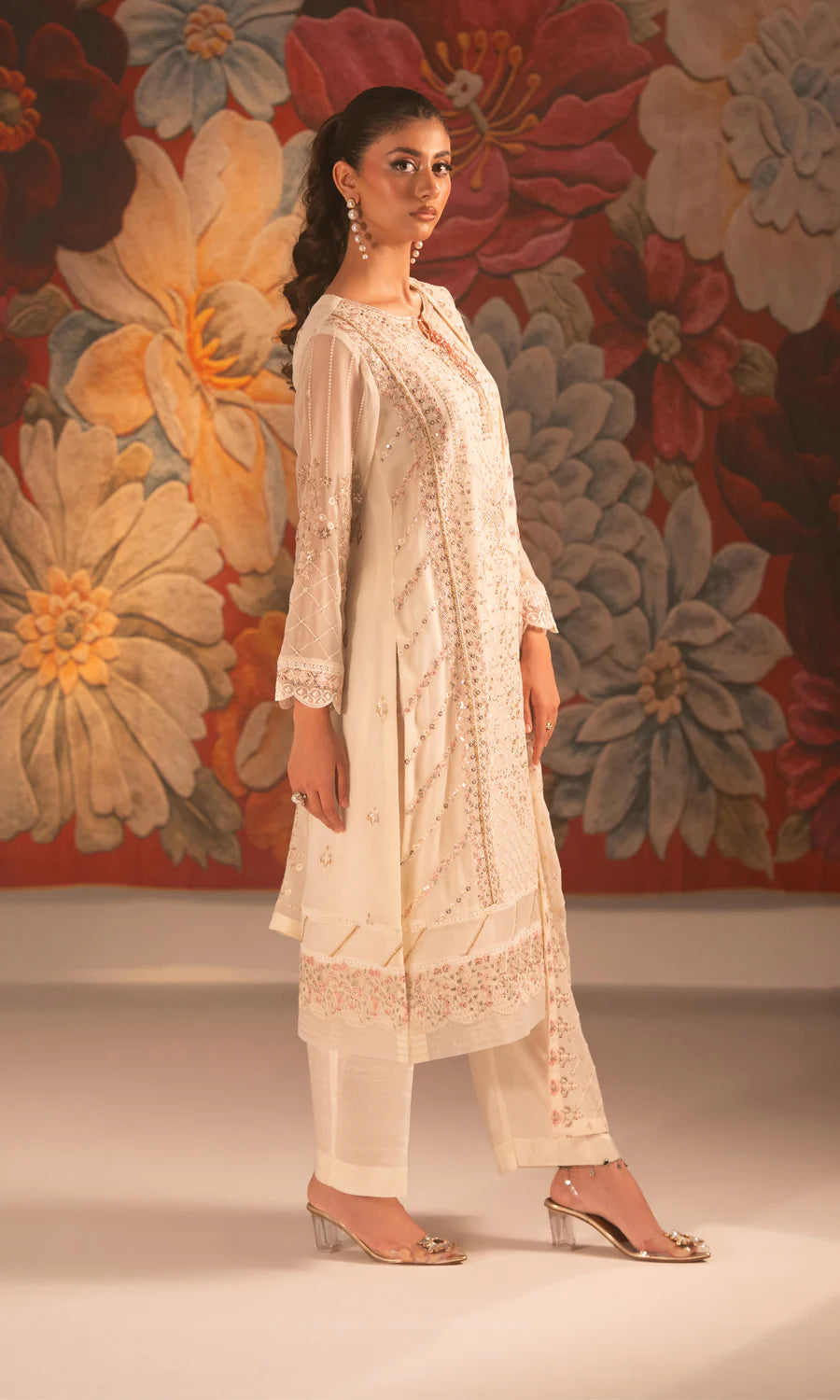 Shamooz - Ecru Three Piece Embroidered Chiffon