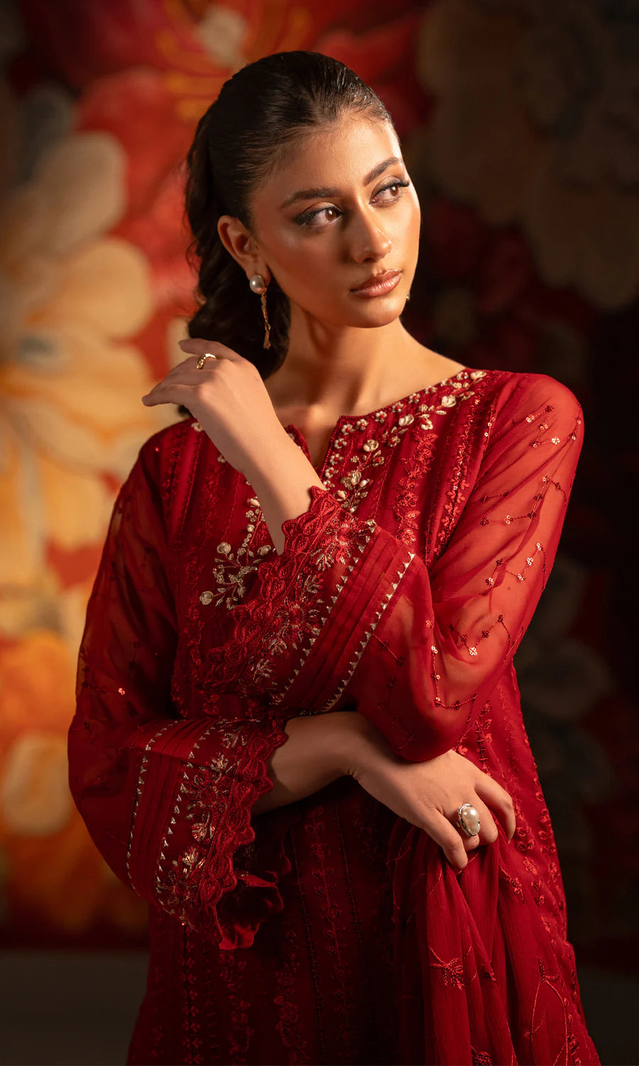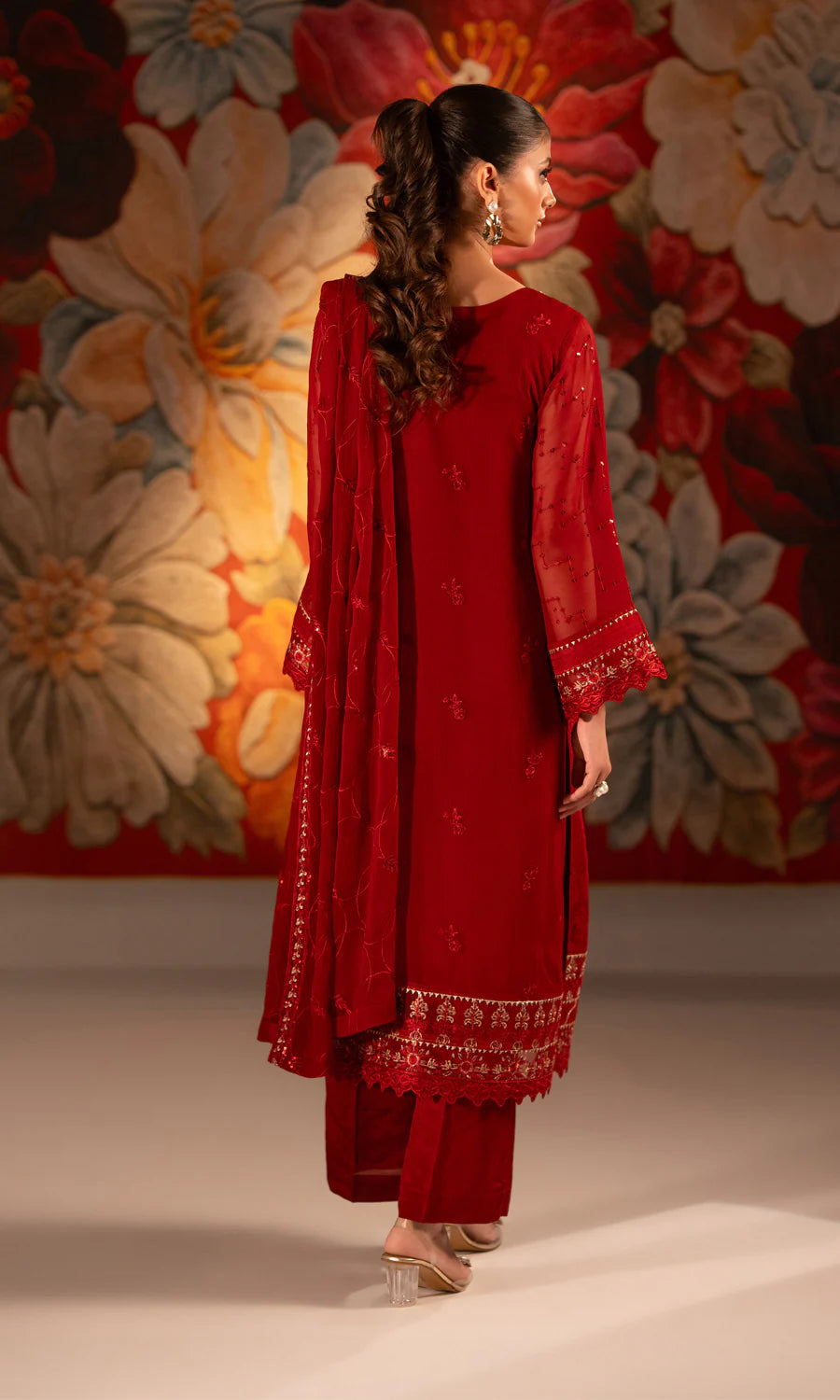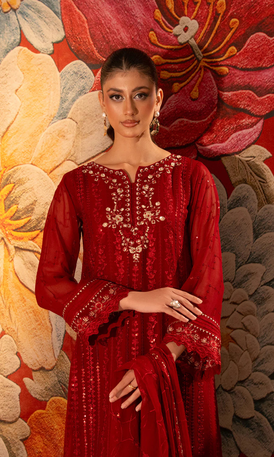 Shamooz - Raspberry Three Piece Embroidered Chiffon