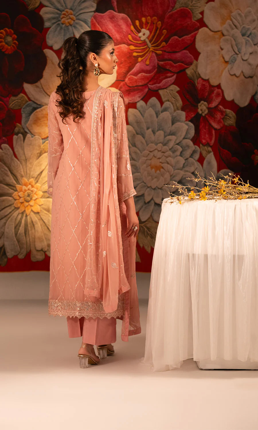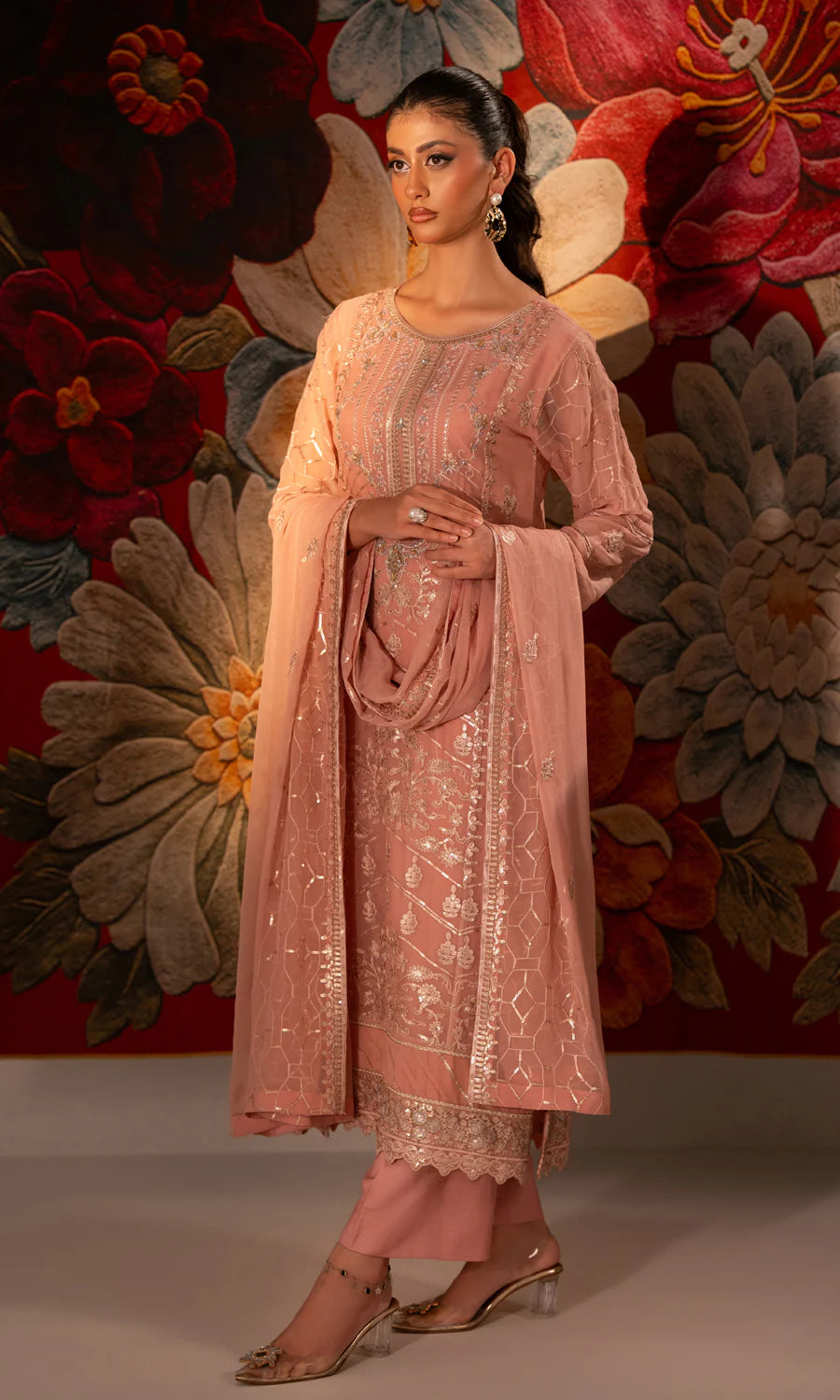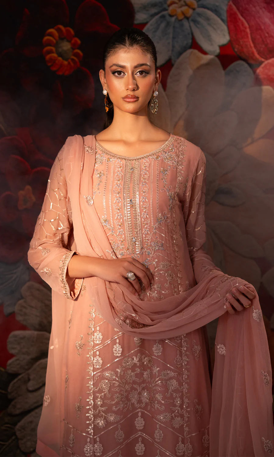 Shamooz - Rose Three Piece Embroidered Chiffon