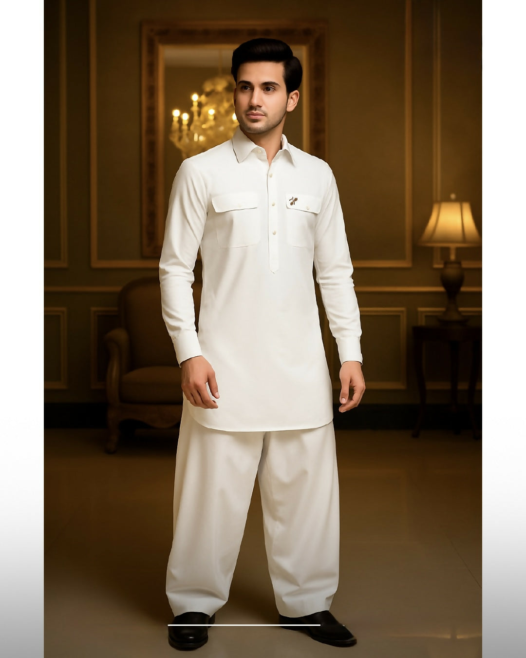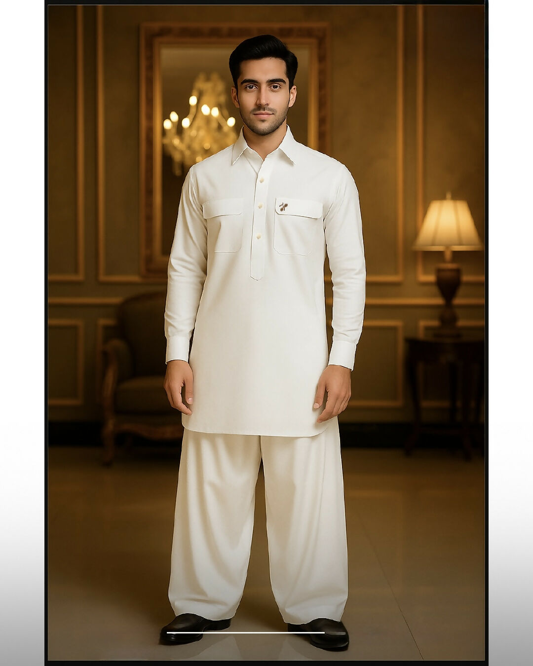 Introducing our White Farshi Shalwar, a modern take on the traditional farshi shalwar outfit. Made with high-quality cotton linen fabric, this outfit combines style and comfort for any occasion. Embrace the traditional fashion with a touch of modernity.