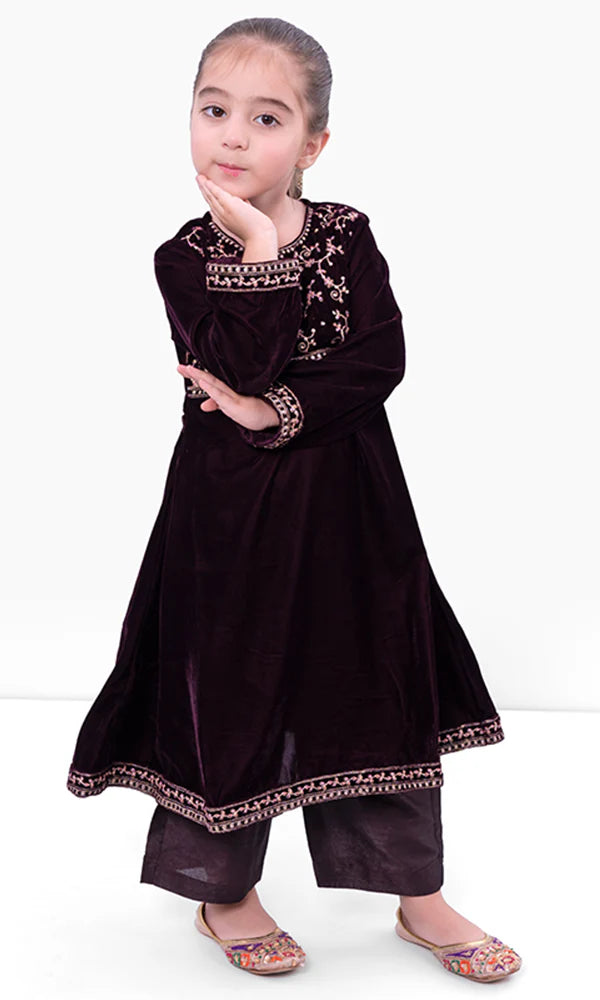 Discover Zubaida's 0313284 Girls Kameez Shalwar, a graceful 2-piece set designed for young fashionistas. The velvet top with full sleeves pairs with raw silk pants for a rich, dressy look that's comfortable enough for everyday wear. As a ready-to-wear, stitched outfit from Little Darling, this set is ideal for birthdays, family gatherings, or festive occasions. If you're asking 'best velvet kameez set for girls' or 'how to choose kid party wear,' wonder: how to pick the perfect look for your child? This design blends standout texture with practical fit.